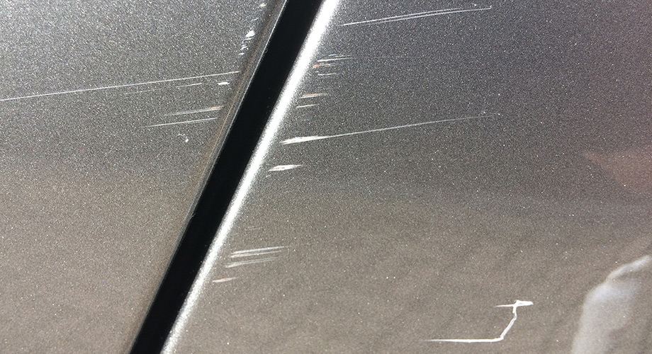 Deep narrow scratches that are down to the paint or primer can be fixed with Chipex™. It is important during the blending solution step to apply very light pressure on the cloth so as to not remove excessive paint from the scratch.